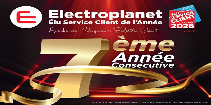 Electroplanet a obtenu le label « Élu Service Client de l’Année Maroc 2026 » dans la catégorie distribution d’électroménager et de produits technologiques, pour la septième année consécutive.