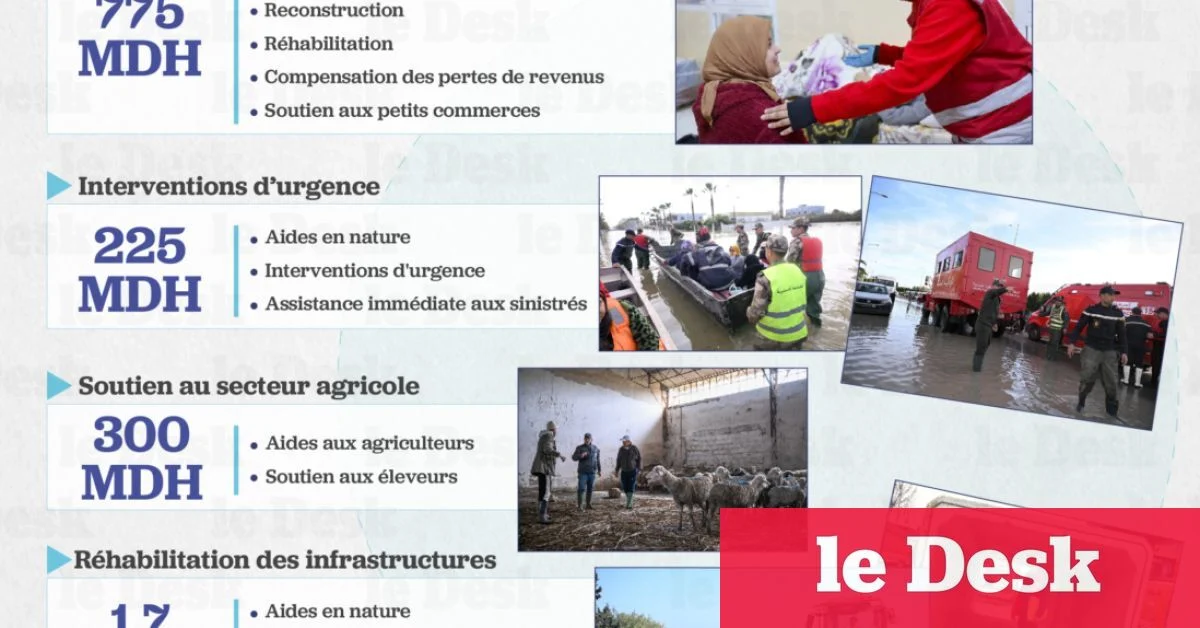 Face à l’ampleur des dégâts, un programme d’aide doté d’un budget prévisionnel global de 3 milliards de dirhams (MMDH) a été mis en place. Ce plan, élaboré sur la base d’un diagnostic approfondi des impacts économiques et sociaux, combine des aides directes aux populations, des mesures de soutien aux secteurs productifs et la réhabilitation des infrastructures.