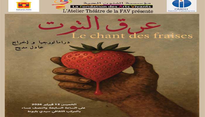 Intitulée « Le chant des fraises » (عرق التوت), la pièce sera présentée ce jeudi 12 février 2026, à 19h30 au Complexe culturel Sidi Belyout à Casablanca.